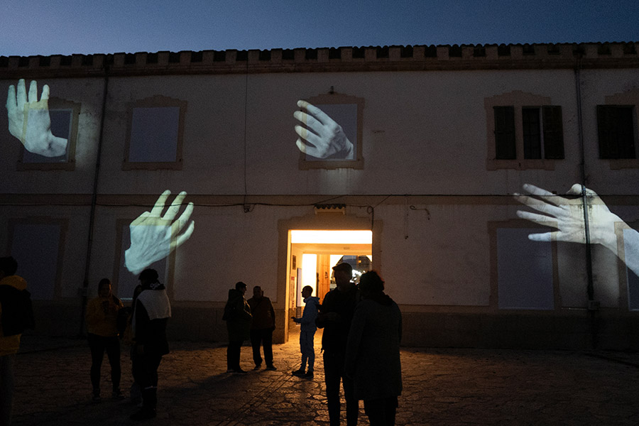 Behind the Walls est une fresque urbaine nocturne qui revisite avec poésie un fragment d’architecture. Des mains géantes émergent des ouvertures, caressent la pierre et en explorent les reliefs, transformant un paysage familier en une expérience sensible, étrange et contemplative.